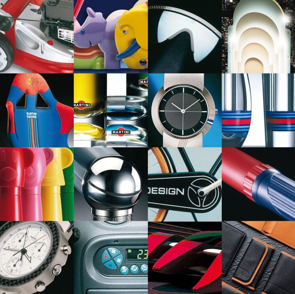 In oltre trent’anni di attività nel settore dell’indistrial design firma orologi, biciclette, mezzi di trasporto, caschi, occhiali, borse, oggetti da scrittura, visual display, centraline di climatizzazione, trattori, falciaeba, complementi di arredo, lampade, packaging per importanti clienti, del calibro di: Abarth, Agip, Alfa Romeo, Artidea, Aura, Banesto, Bieffe, Bolaffi, Campari, Carioca, Centauria, Diavia, Elvström, EP Company, Fiat, Hasegawa, Honda, Ibea, Infostrada, JBE Sitec, Lancia, Louwman Museum, Marlboro, Martini&Rossi, Martini Racing, Mazda, Merit, Mokart, Momo, Momo Design, Mondadori, Museo dell’Auto di Torino, Philip Morris, Shell, Sparco, Summit, Sustain, Universal.