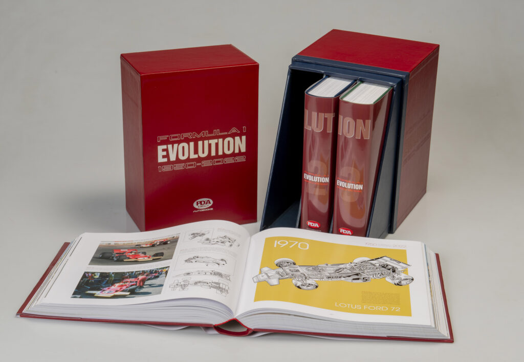 Un’opera monumentale, dedicata all’evoluzione tecnica delle vetture di Formula 1, con gli “spaccati” e i disegni tecnici dei modelli più rappresentativi, dal 1950 al 2022.